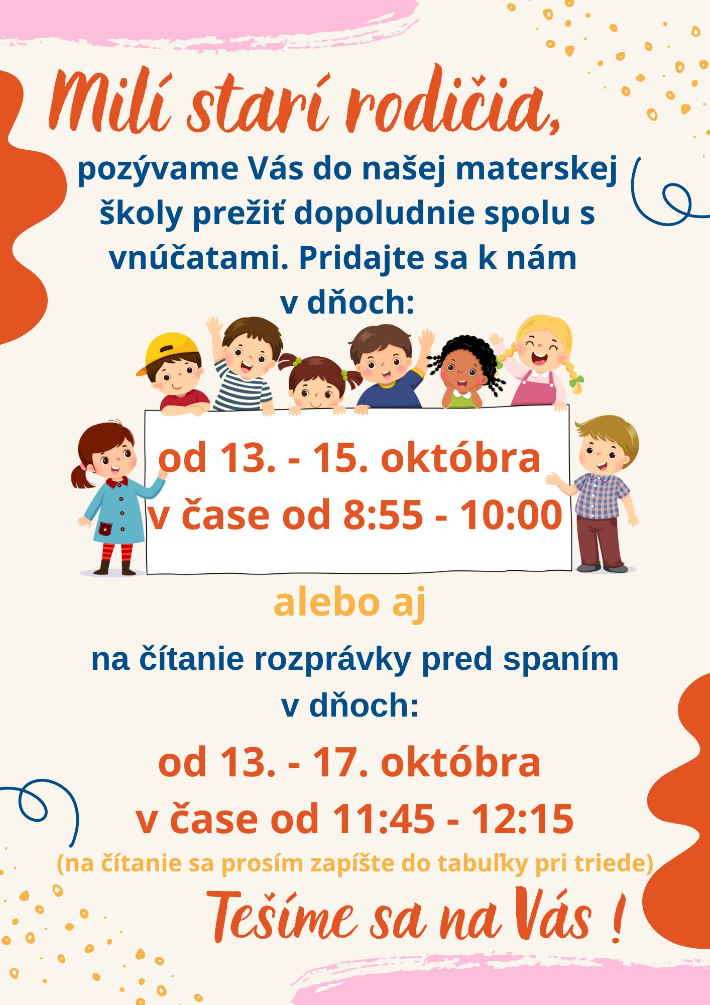 Zápis je spojený aj s DŇOM OTVORENÝCH DVERÍ v čase od 15:00 hod. do 16:30 hod. .